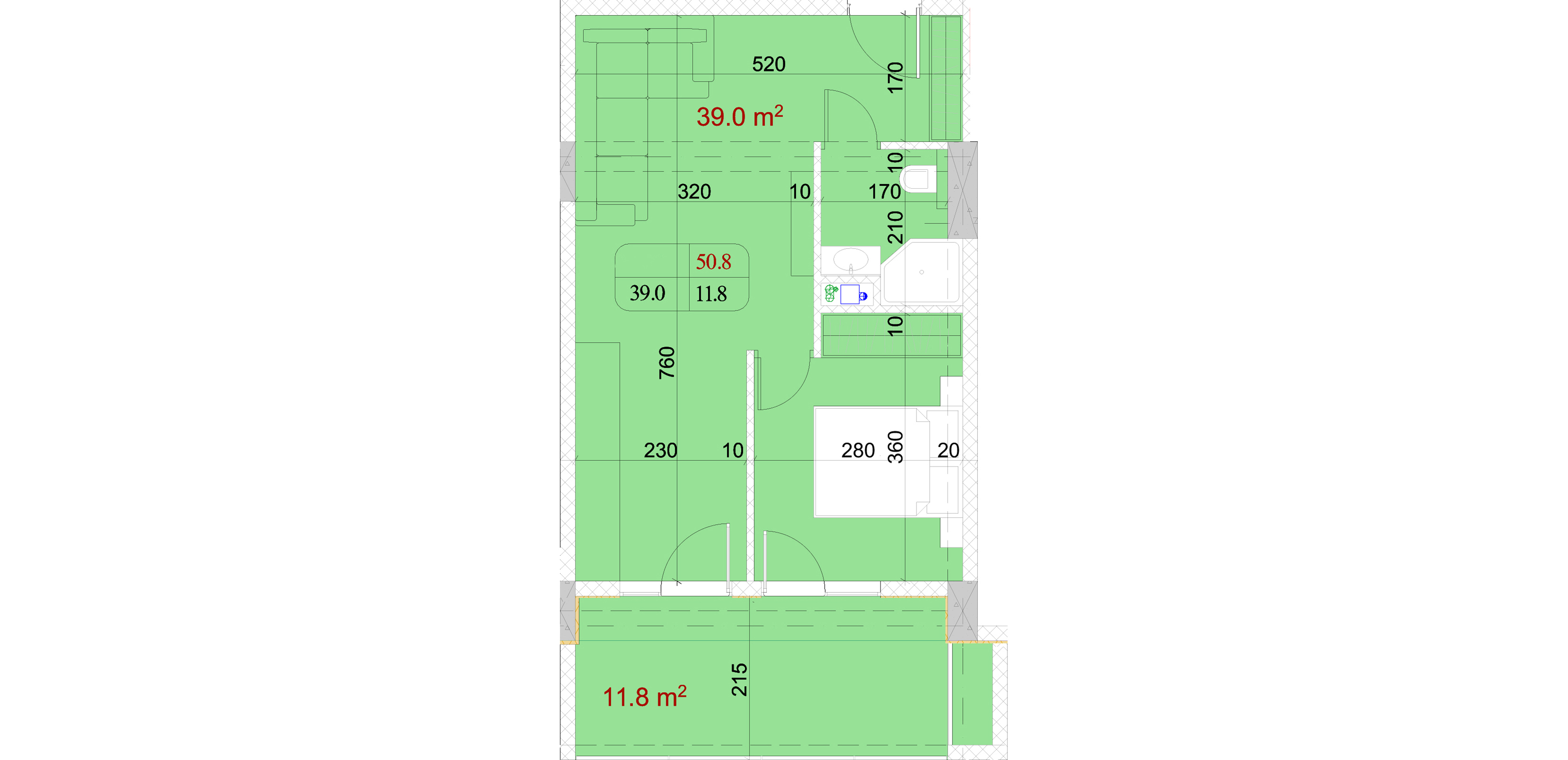 საერთო ფართი.: 50.8 m²