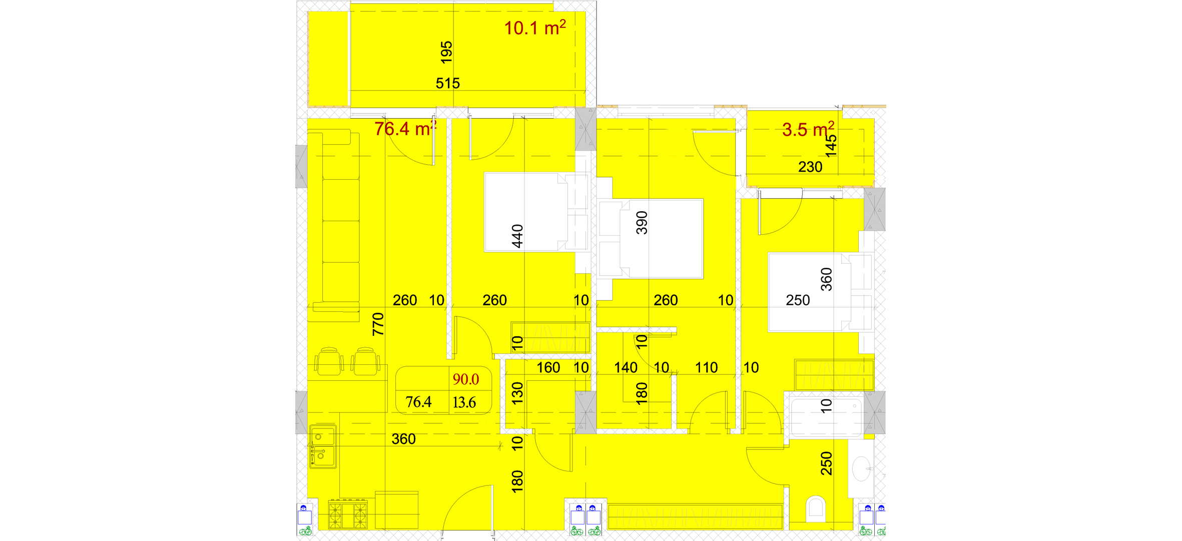 საერთო ფართი.: 90.0 m²
